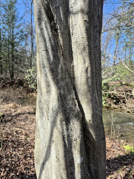 If there is one feature that makes the American Hornbeam instantly recognizable, it is the bark. The smooth, blue-gray bark twists and bulges like the muscles of an athlete’s arm. This is not a disease or deformity — it is normal, healthy growth, caused by sinuously interlocking wood fibers beneath the thin bark surface.