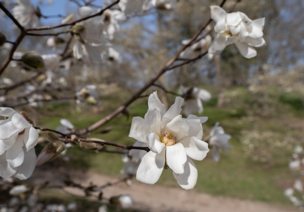 But the Anise Magnolia is far more than a fragrant curiosity. It is a genuinely beautiful flowering tree — slender, graceful, early-blooming, and covered in white star-shaped flowers on bare branches each March and April.