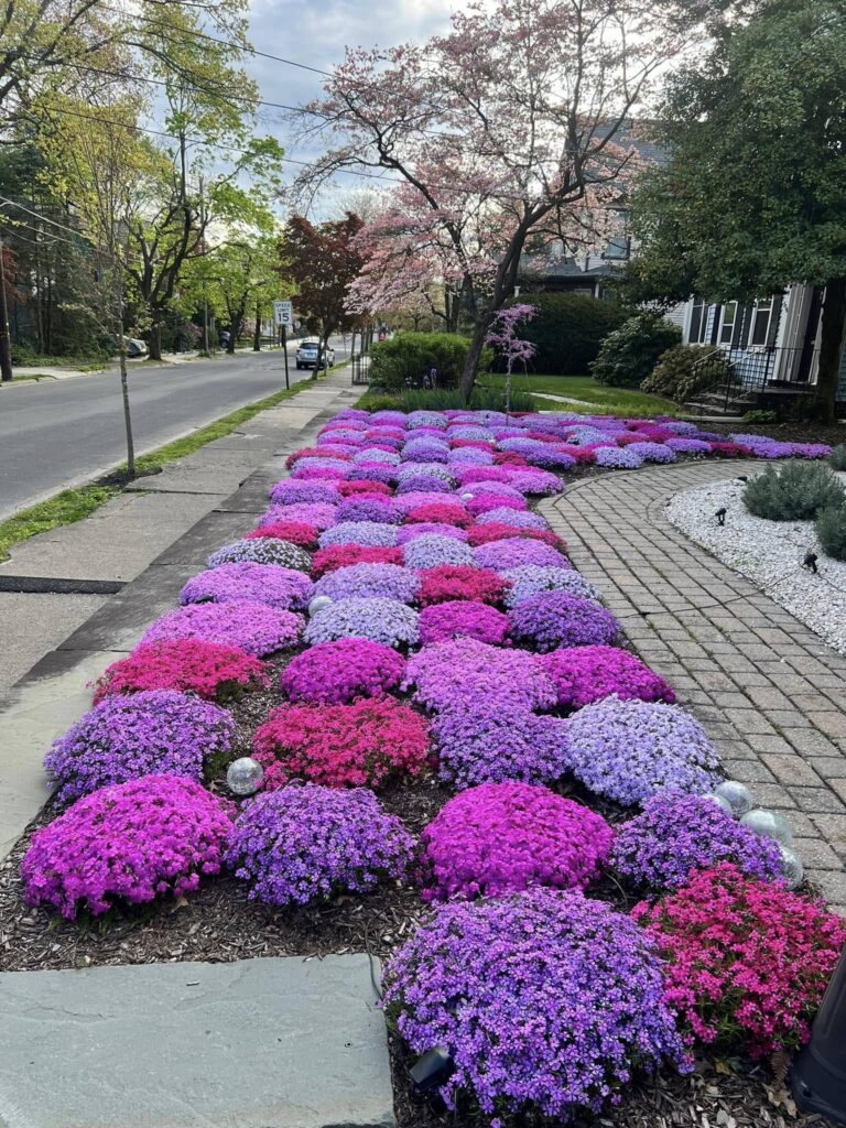 In spring, it produces a spectacular flush of pink, purple, blue, or white flowers that nearly obscures the foliage entirely. After flowering, its low mat of evergreen leaves provides clean, consistent coverage.