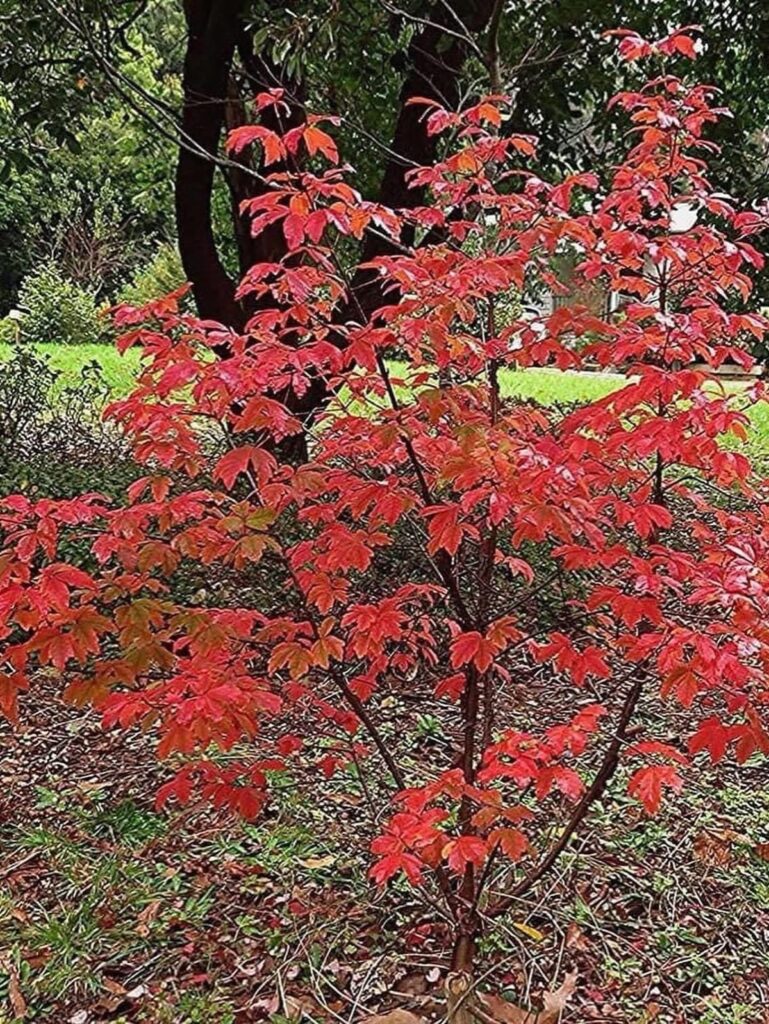 Paperbark maple grows with an upright oval to rounded crown. It is genuinely small as trees go — 20 to 30 feet tall at maturity, and 15 to 25 feet wide. This compact size makes it suitable for gardens that cannot accommodate larger maples like sugar maple or red maple.