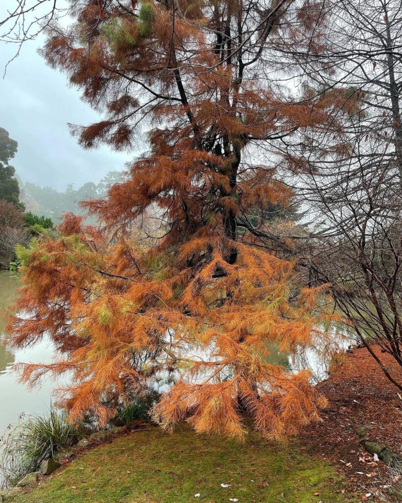 The bald cypress is one of the great trees of the American South. Native to the swamps, floodplains, and riverbanks of the southeastern United States, it is one of the few conifers that sheds its needles entirely in autumn — hence “bald.” The autumn colour transition, from green to soft russet and cinnamon before the needles drop, is genuinely beautiful.