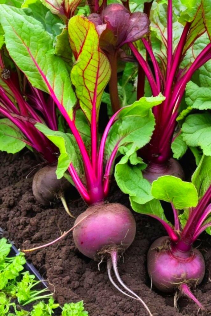 Beetroot is a dual-purpose vegetable — you can eat both the roots and the nutritious leafy tops. It grows well in summer, tolerating temperatures up to around 75°F (24°C) before growth begins to slow.
