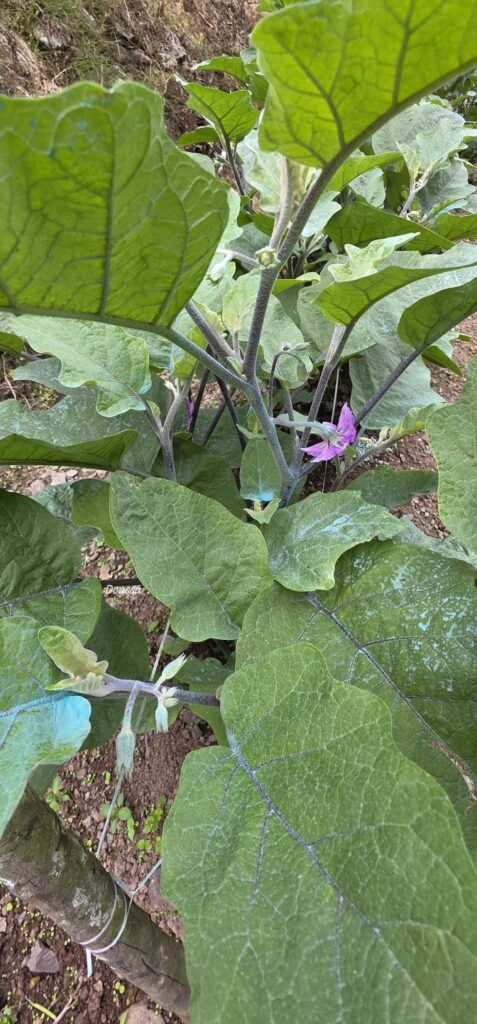 The plants are attractive with their purple flowers and glossy fruit, making them equally suitable for ornamental and productive gardens.
