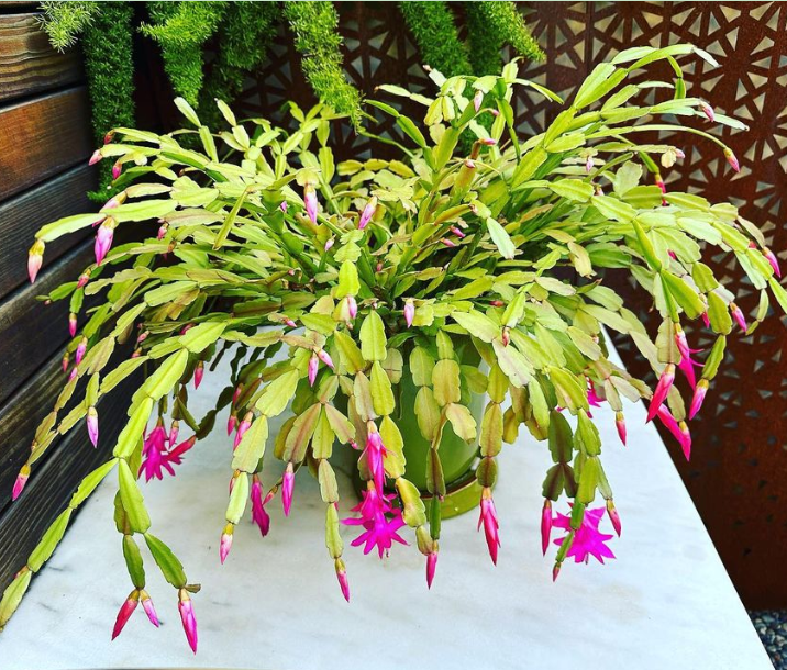 This succulent grows 6–12 inches tall with flat, segmented stems. Its tubular flowers, in pink, red, white, or orange, bloom from late fall to early winter. The cascading stems make it ideal for hanging baskets.