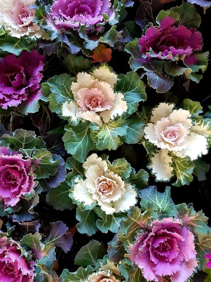 Growing 12–18 inches tall, ornamental kale forms rosettes of purple, pink, white, or green leaves that mimic flowers. The colors intensify in cold weather, making it a winter standout. You can use it in beds and pots for bold texture.